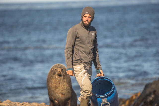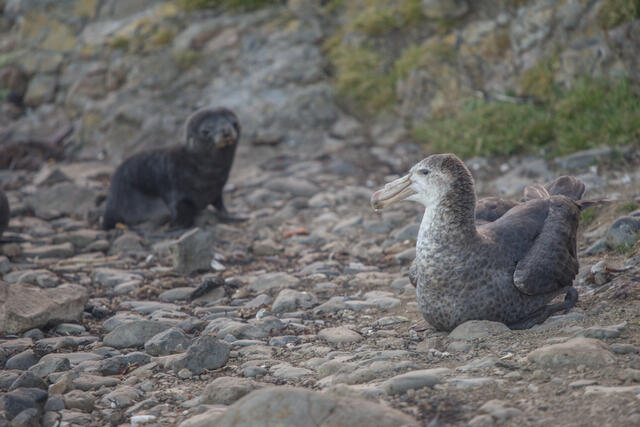 Découverte mutuelle entre un pétrel et un bébé otarie - 14234 - Patoir Armand