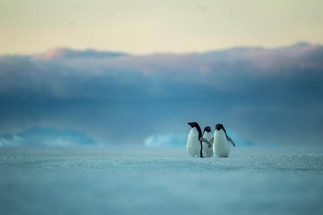 Colonie de manchots Adélie face au soleil couchant - 11721 - Decourteille Virgil