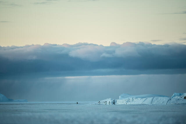 Manchots empereurs au soleil couchant - 11711 - Decourteille Virgil
