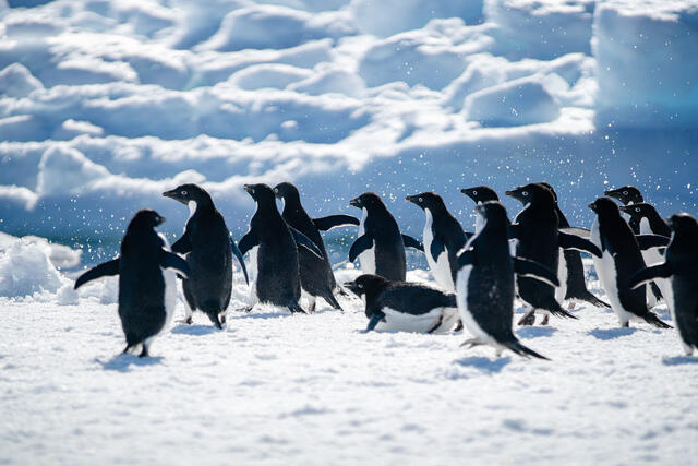 Groupe de manchots Adélie au bord de la banquise - 11939 - Ravitchandirane Mervyn