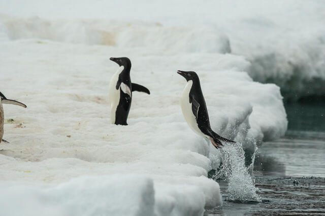 Saut de manchot empereur sur la banquise - 7253 - Munier Vincent